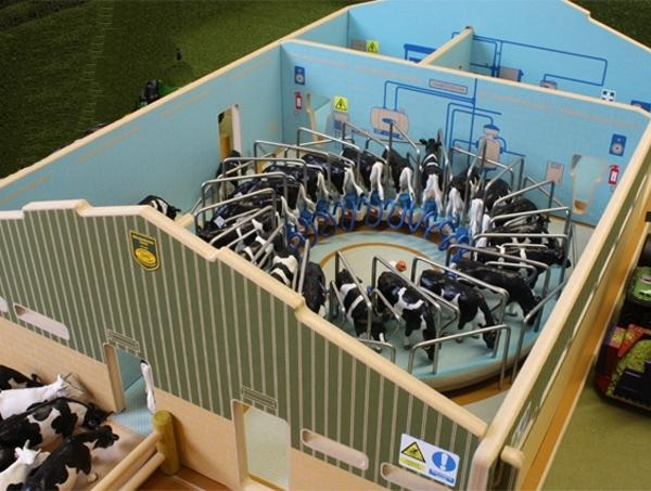 Bâtiment de type salle de traite Rototandem 20 emplacements dimensions 71x42x21cm vaches et matériels agricoles vendues séparément