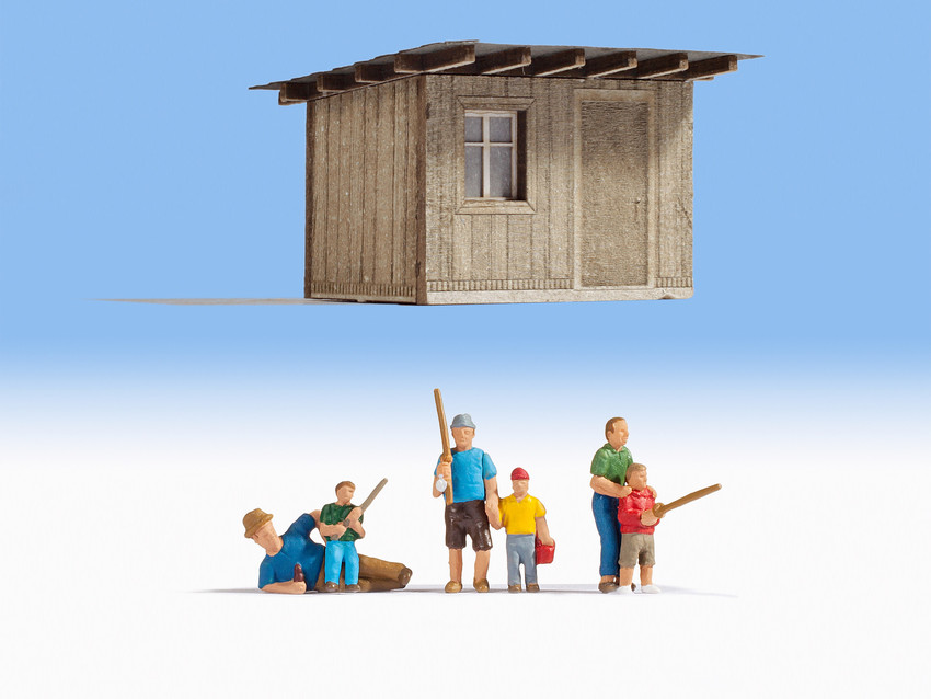 Cabanon de pêche avec pêcheurs