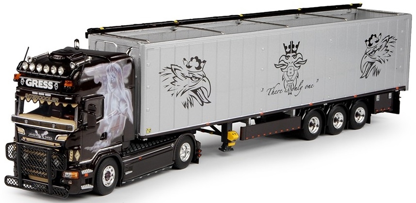 Camion 4x2 SCANIA R09 Topline et remorque céréalière 3 essieux aux couleurs GRESS