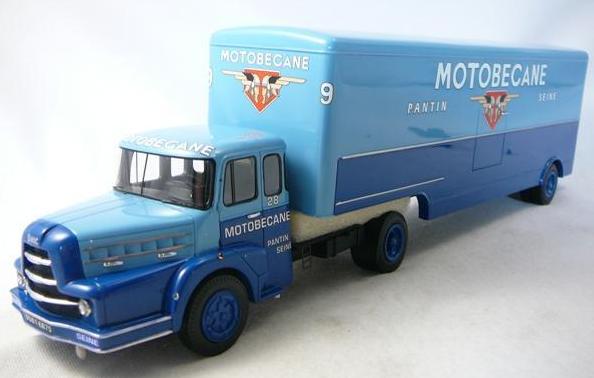 Camion 4x2 UNIC IZOARD et semi 1 essieux aux couleurs MOTOBECANE modèle en résine