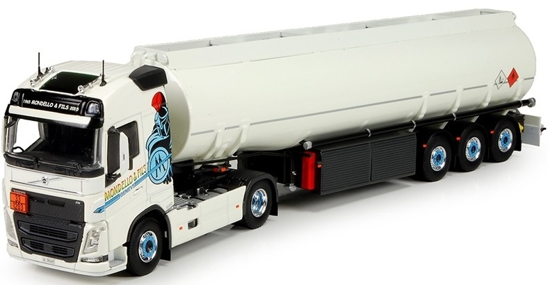 Camion 4x2 VOLVO FH04 Globetrotter et citerne essence 3 essieux aux couleurs des transport Mondello et fils