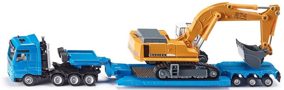 Camion MAN 8x4 avec pelle LIEBHERR 974 Litronic sur porte engins 3 essieux