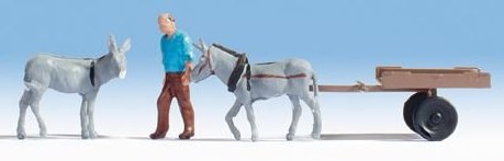 Chariot avec deux ânes et fermier