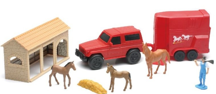 Ensemble avec voiture et van personnage et accessoires et 1 bâtiment