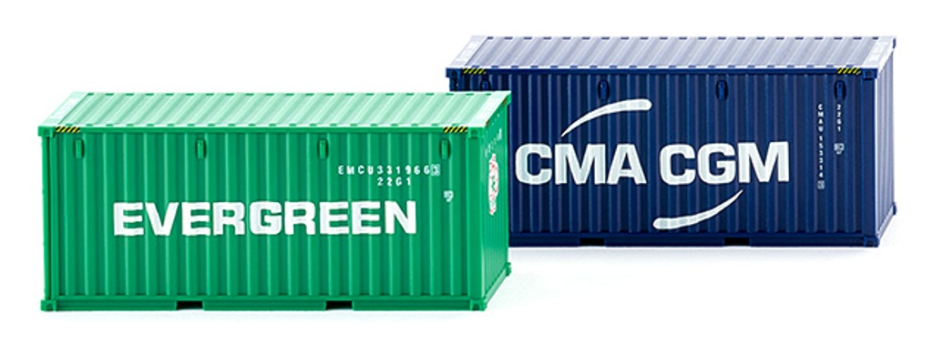 Lot de 2 containers 20 Pieds EVERGREEN et CMA-CGM Ech:1/87