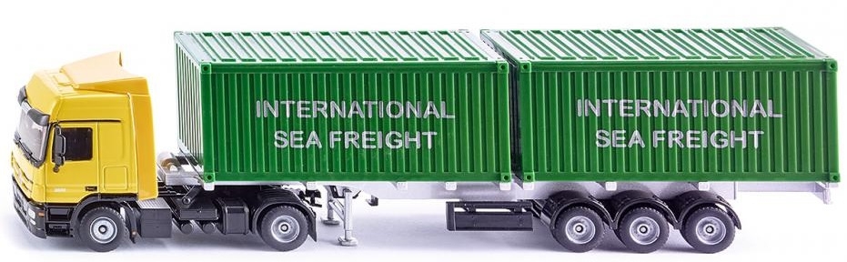 MERCEDES BENZ Actros 4x2 avec semi 3 essieux porte container et 2 containers 20 pieds.