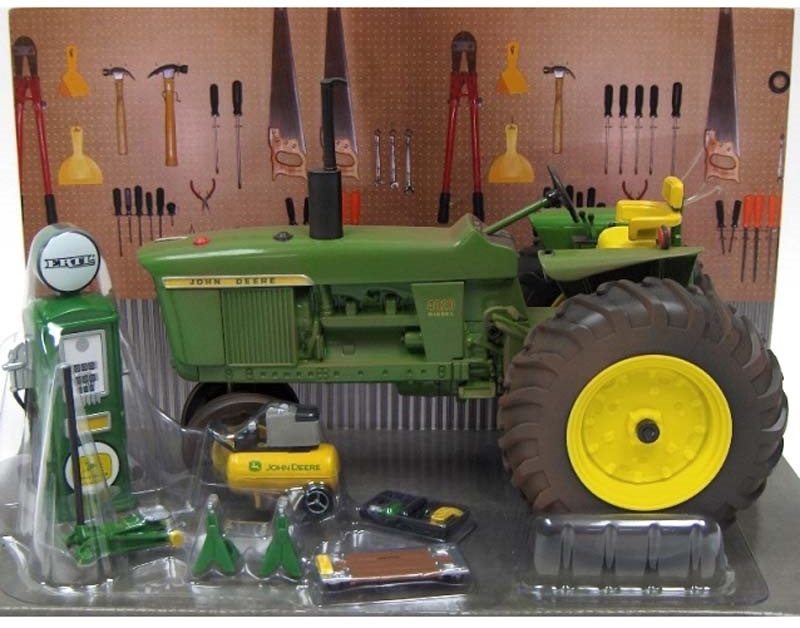 Tracteur JOHN DEERE 4020 version Row Crop avec salissures et accessoires d'atelier