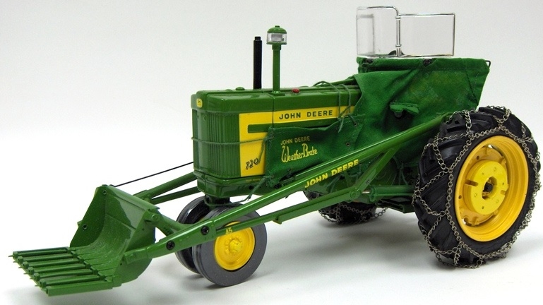 Tracteur JOHN DEERE 720w/80 ROW CROP équipé d'une fouches et d'une lame chainage inclus