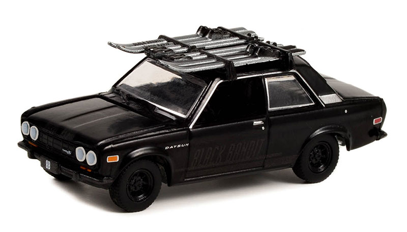 Voiture sous blister de la série BLACK BANDIT – DATSUN 510 avec porte-skis 1971